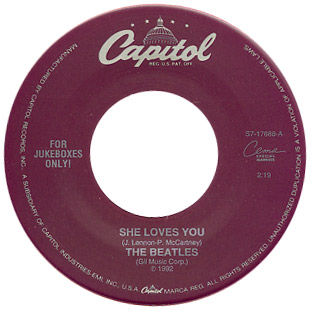 Pictures of the UK releases of She Loves You and releases of Sie Liebt Dich